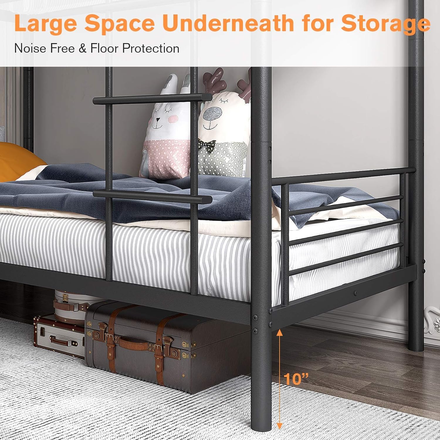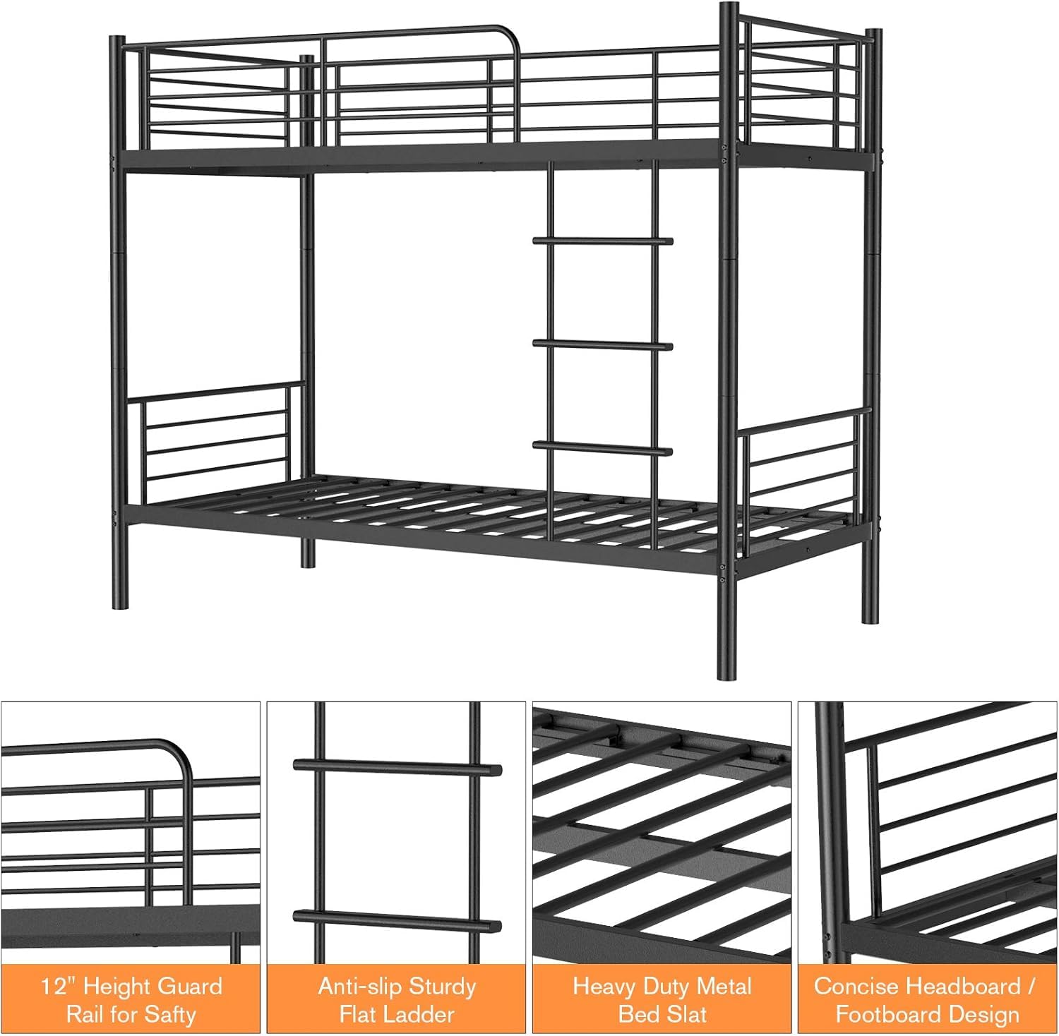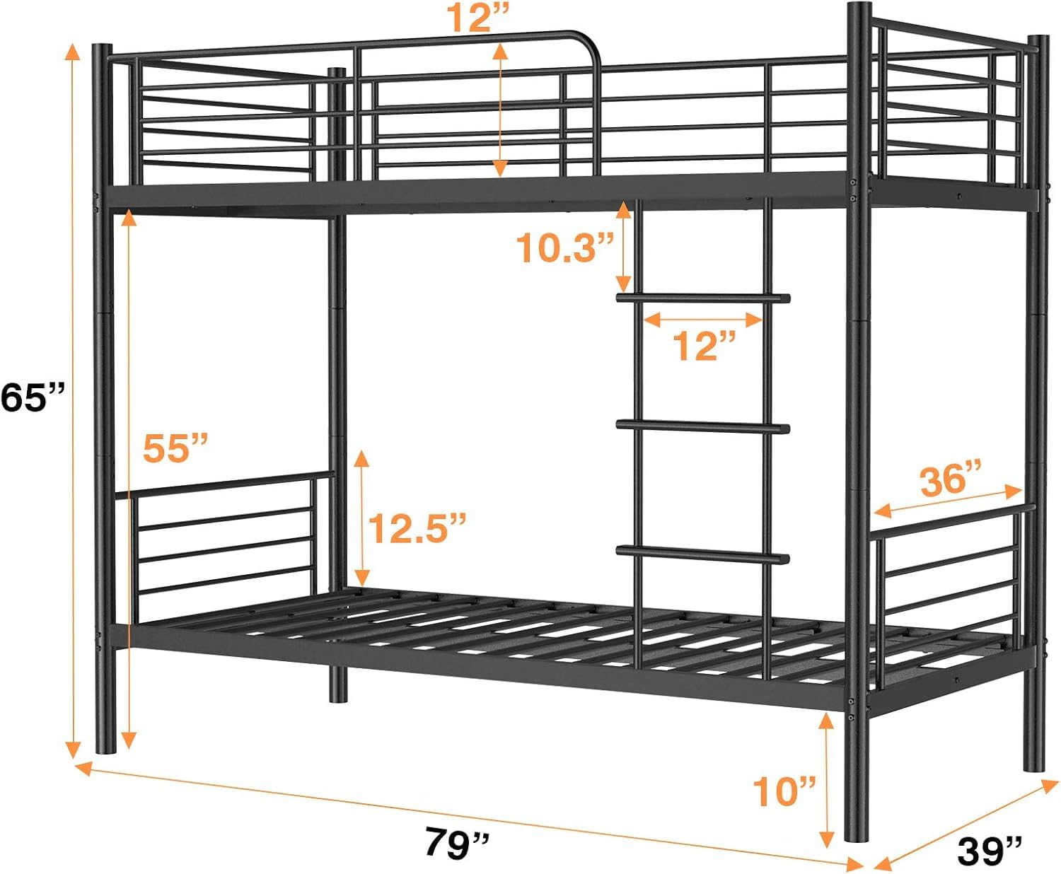 Smake mart Metal Bunk Bed 2 in 1 Bunk Bed with Safety Guard Rail for Kids | Black Metal Bunk Bed Frame (79″L x 39″W) with 72 x 36 Inch Mattress Size